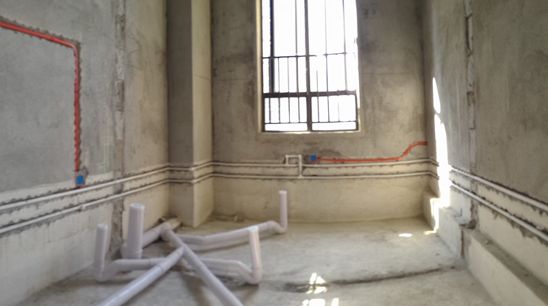 水路布线时尽量避免水管从地上过,因为日后地面水管更容易受压。此外,水路布线有冷水管和热水管之分,在排布时注意遵循左热右冷的规律。埋在墙内的冷水管至少要有1cm的保护层,而热水管的保护层要比冷水管厚0.5厘米,在开槽时要注意开槽的深度。