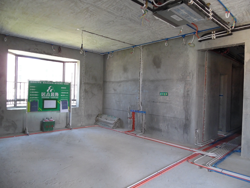 水路布线时尽量避免水管从地上过,因为日后地面水管更容易受压。此外,水路布线有冷水管和热水管之分,在排布时注意遵循左热右冷的规律。埋在墙内的冷水管至少要有1cm的保护层,而热水管的保护层要比冷水管厚0.5厘米,在开槽时要注意开槽的深度。